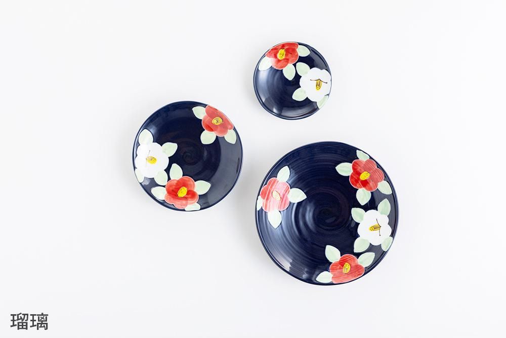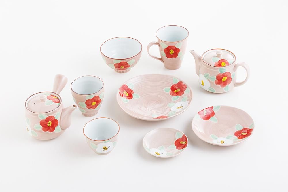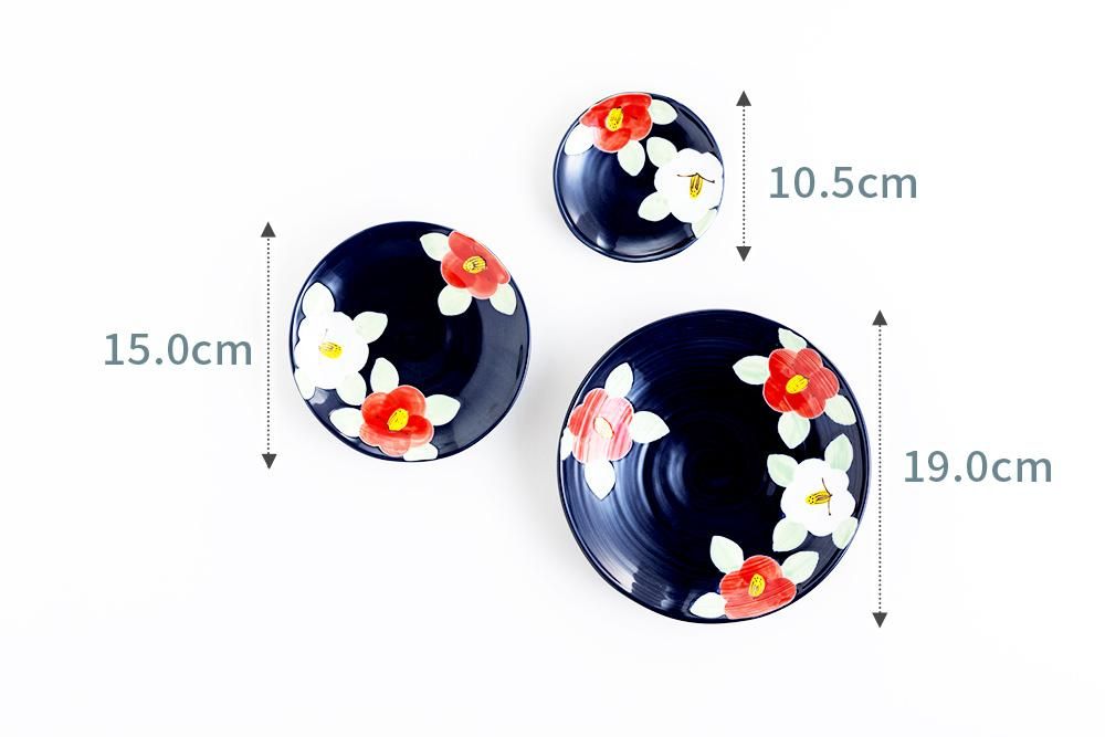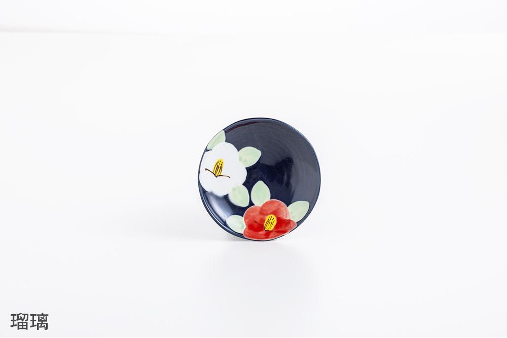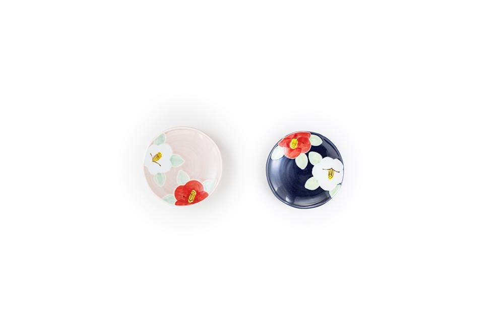 職人の手書きによって描かれた花、よく比べると少しづつ違っています。独特のにじみがあたたかい風合い。